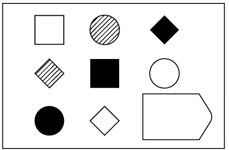 في مصفوفات ريفن القياسية، يتطلب تحليل الأسئلة الأخيرة قدرة معرفية أكبر. في هذا النموذج، تم تقديم الأسئلة بالألوان الأسود والأبيض.