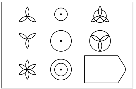 تُعرض معظم العناصر على خلفية ملونة لجعلها أكثر جذبًا بصريًا للمشاركين. ومع ذلك، فإن بعض العناصر الموجودة في المجموعة B تُعرض بالأبيض والأسود. وبالتالي، إذا كان الشخص يتجاوز توقعات المُختبِر، يتم الرجوع إلى المجموعات C و D و E من مصفوفات ريفن القياسية.